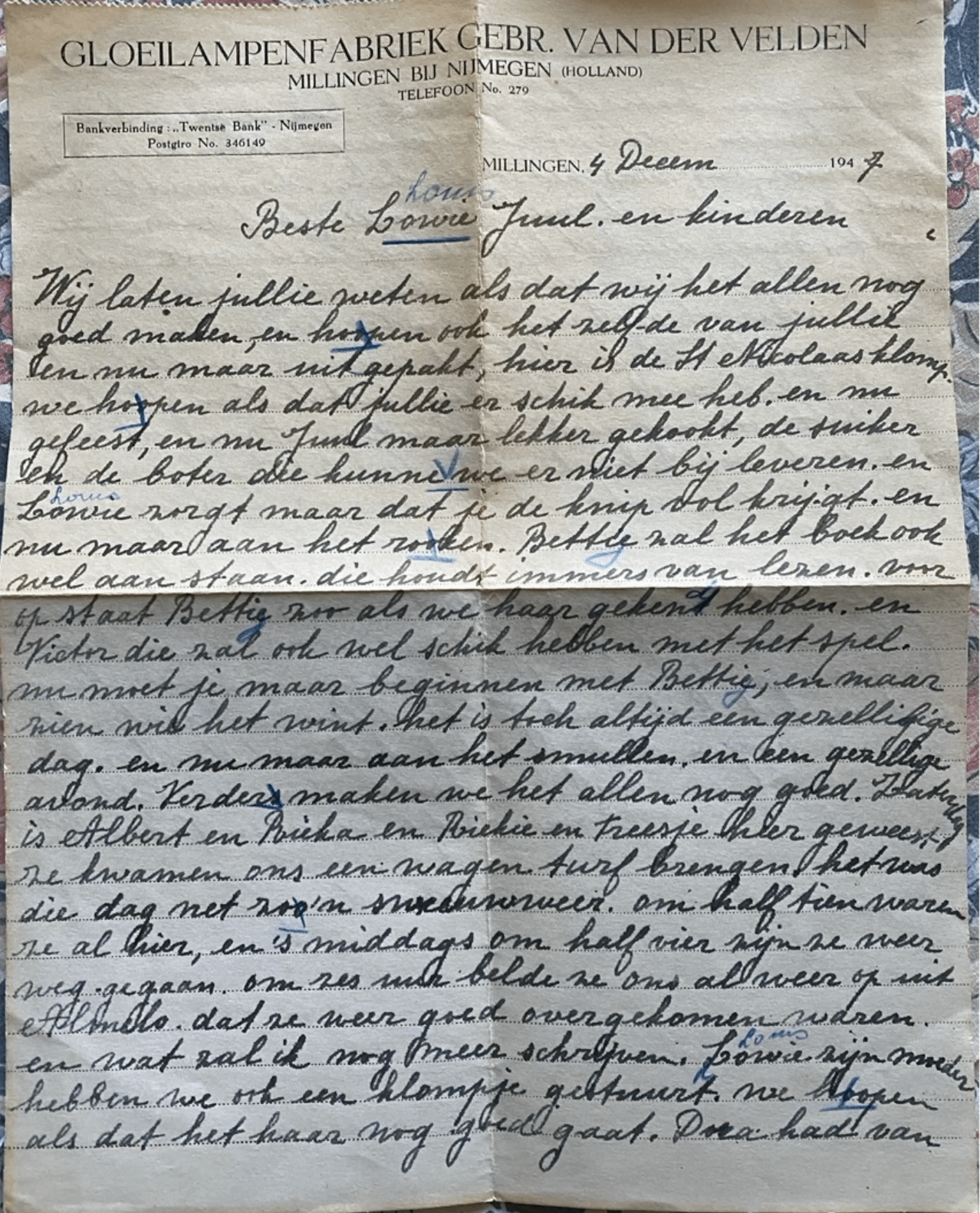 Wij zijn toen uiteindelijk in Almelo terechtgekomen. Hoe we daar zijn gekomen weet ik niet meer. De mensen in Almelo waren ook weer familie van de mensen in Nijmegen en Millingen.