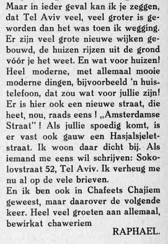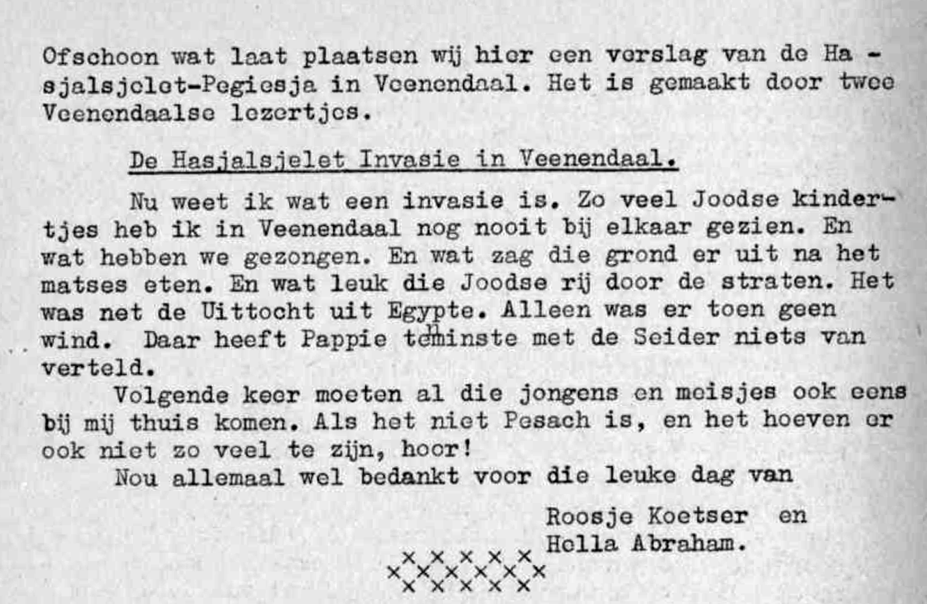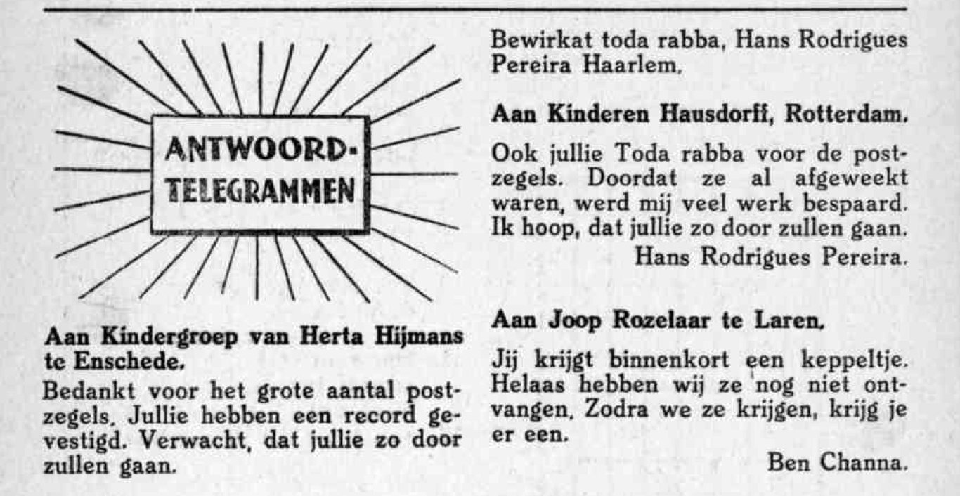 ‘Ik heb eens gebruikte postzegels opgevraagd. Ik schreef een berichtje in de Hasjalsjelet-krant over deze postzegelactie. Deze gebruikte postzegels werden verkocht ten behoeve van Hasjalsjelet. Verder werden er ook Rosj Hasjana-kaarten (Joods Nieuwjaar) uitgegeven door Hasjalsjelet.’