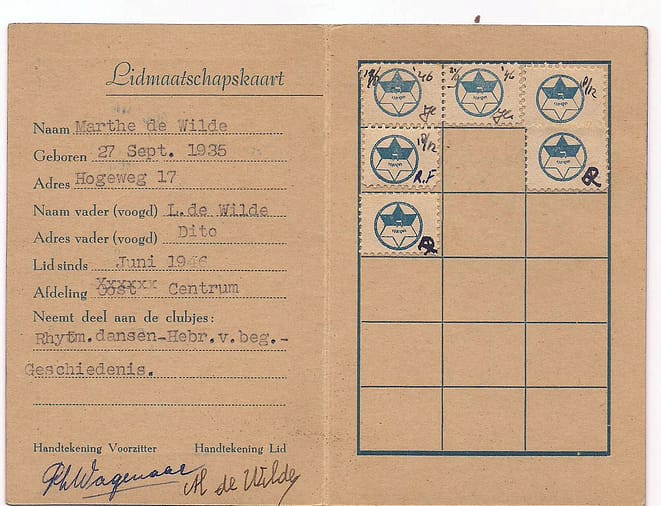 Lidmaatschapsbewijs Tikwatenoe van Marthe de Wilde (later Marthi Hershler-de Wilde), 1946